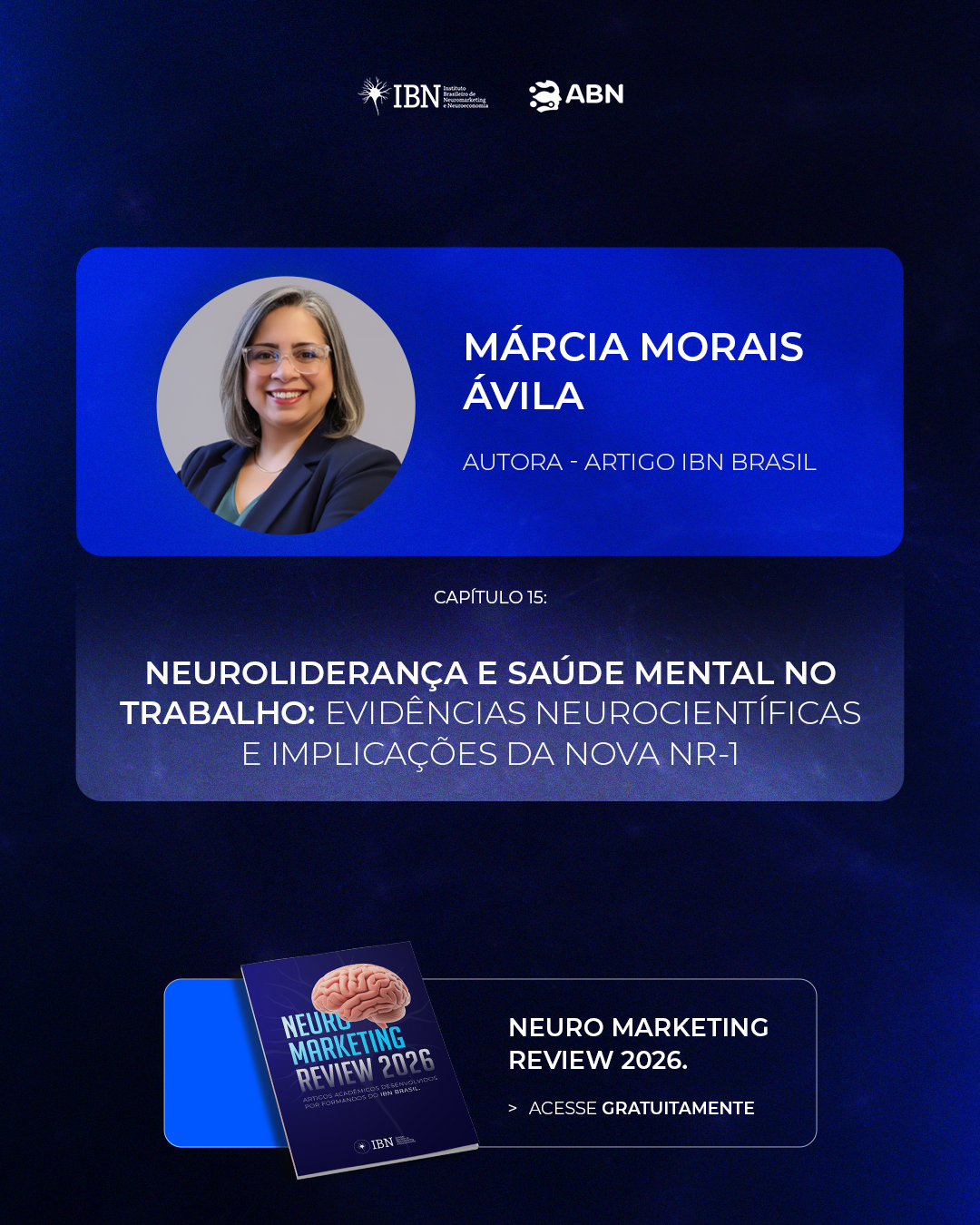 Participar da primeira edição da revista de Neuromarketing do IBN é, para mim, um marco muito especial na minha trajetória. Fui aluna, me formei no IBN e agora tenho a alegria de ver meu artigo publicado no Capítulo 15, tratando de um tema que considero urgente: neuroliderança, saúde mental no trabalho e as implicações da nova NR-1 para o ambiente corporativo.